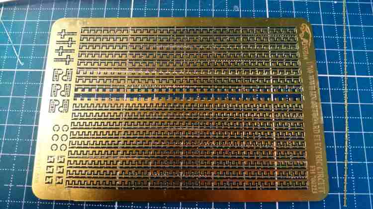 舷外電路とは磁気機雷対策として、船体の磁気を打ち消すために取り付けられた装備です。舷外電路といえば都市伝説で有名な米海軍のフィラデルフィア実験を思い出します(笑)。得体のしれないこの手のエピソード好きなんですよね・・。本題に戻って、舷外電路は船体のデティールアップに大きく貢献してくれます。キットの船体にはなかったので今回はエッチングパーツを使いました。