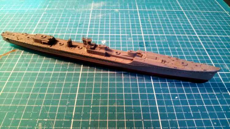 キットの指示通りに作ると魚雷発射管の射界を塞ぐ位置にボートを置くことになったり、煙突の位置が変だったりします。ゲーム内の暁も本来の姿と違いますが(終戦まで残った響を参考にモデリングされているせい)、慣れ親しんだ姿というのもあってゲームの暁を参考にしました。
