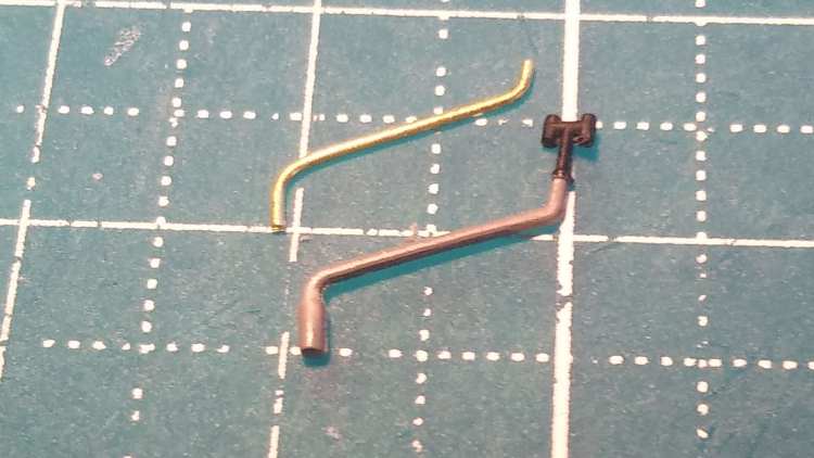↑炊事煙突です。第一煙突の左側にH字の部分が来るんですが高さが微妙に足りなかったり、なんかもっさりしていたので0.3㎜の真鍮線でパイプ部分を作り直しました。