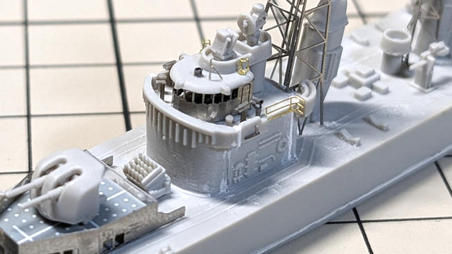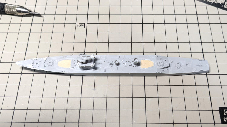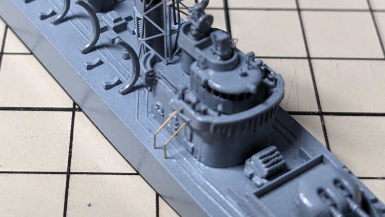 後部はこんな感じ。後部の76㎜砲は重量軽減のためシールドが無しだったらしいです。(時期や同型艦によって異なるみたいですが・・)主砲は方針を0.4㎜の真鍮パイプに交換しています。