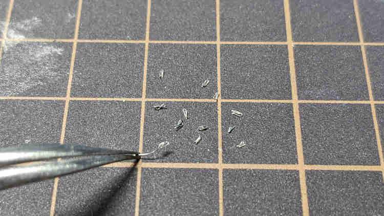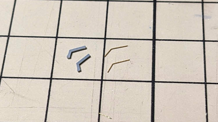 艦橋横の救命いかだを置く枠は0.2mmの真鍮線で作りました。