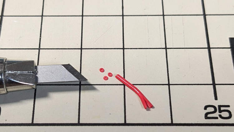 内火艇の舵はプラ板と伸ばしランナーで作りました。