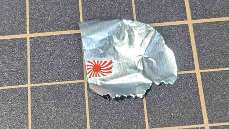 旭日・・、じゃない自衛艦旗のデカールはアルミホイルに貼り付けると風にたなびく様子を表現できます。