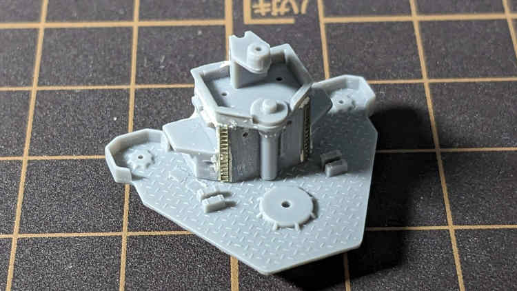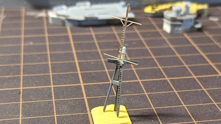 後部艦橋はこんな感じです。127mm高角砲や各種機銃、そして光学機器を後々取り付け予定。