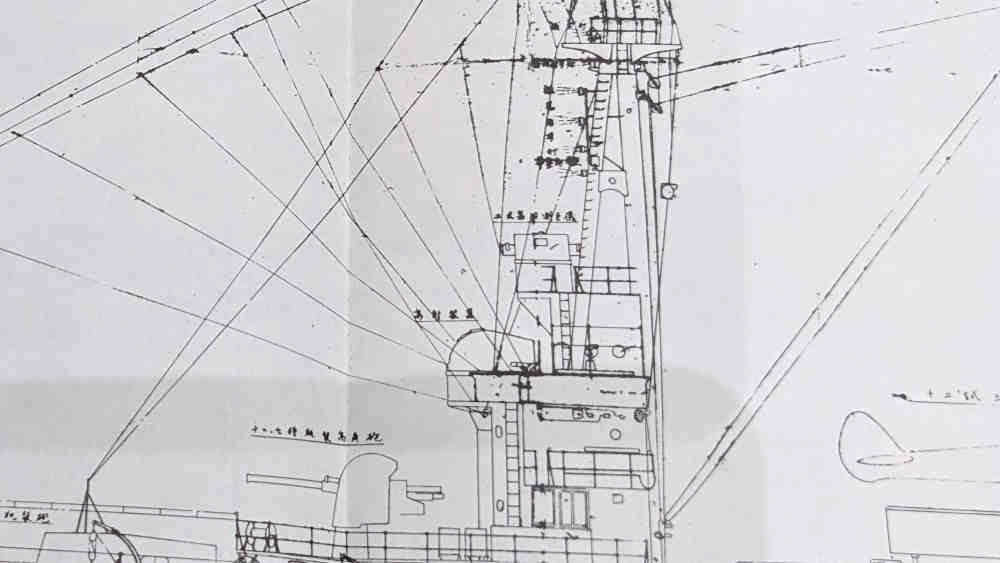 高射装置に関して。これは『昭和造船史 別冊 日本海軍艦艇図面集』の鹿島の艤装図です。127㎜砲右上に高射装置、その上に判読が難しいのですが"2式高角測距儀"とあります。図面は1942年のものなので"2式"でも問題なさそうなのですが、この高角測距儀については調べても出てきませんでした。もし何か知ってらっしゃいましたらコメントで教えていただけるとうれしいです。