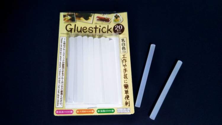 使用するのはグルーガンと円形のフタのみです。グルーガンと、水柱本体になるグルースティックはどちらもダイソーで購入できます。