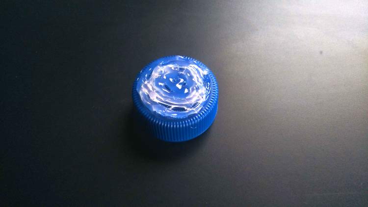 円形のフタですが、これは水柱の土台として使います。ですので円形で持ちやすく、80℃ほどのグルーガンをくっつけても溶けない物なら何でもいいです。個人的にはブルガリア飲むヨーグルトのフタ(直径4㎝)がちょうどいいサイズだと思います。土台になるなら塗料のフタなどでもok。