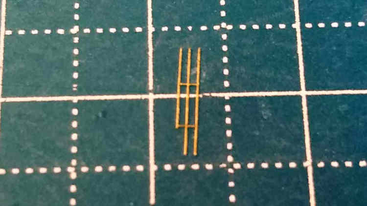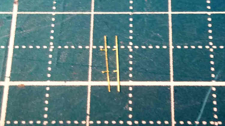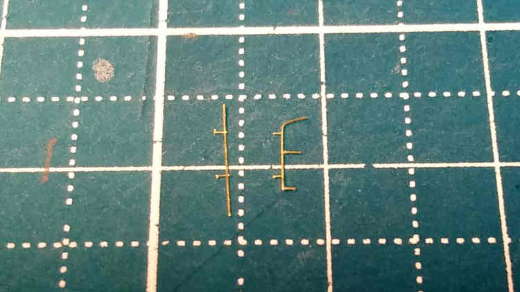 当時の日本駆逐艦は船体各所にはH字の排気管?があり、これも作ってみました。管は0.2㎜の真鍮線でH字部分は伸ばしランナーです。