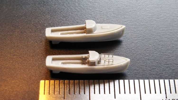 カラフルな艦載艇ですね。ライトはシルバーで塗装し、クレーンはエッチングパーツを利用、副砲は上部をイエローで塗装しています。