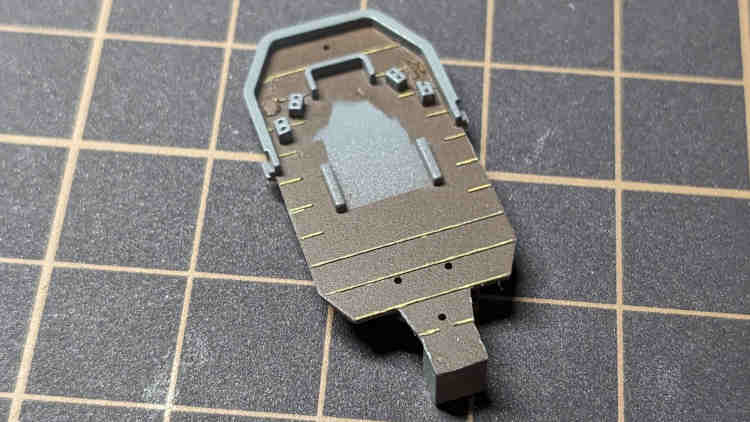 前部艦橋のリノリウムは上手く色分けできてますね、よかったー。あとはそれぞれの層を接着していく感じですね。