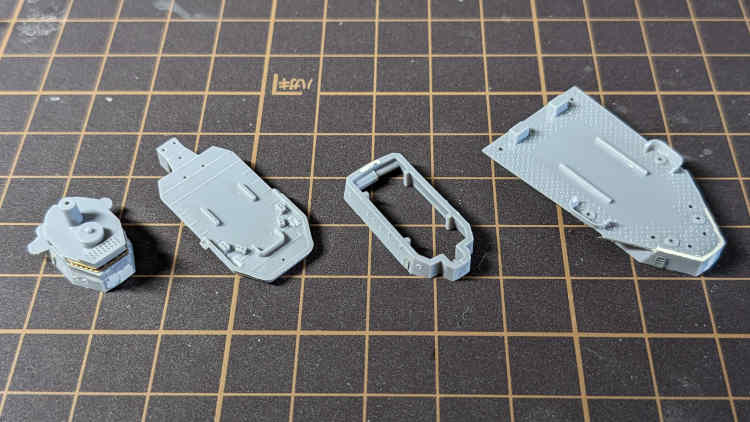 船体はこんな感じでウォーターラインシリーズの一般的なつくりといったところ。船体はパーツどうしのずれもなくきっちりした感じで好感触。