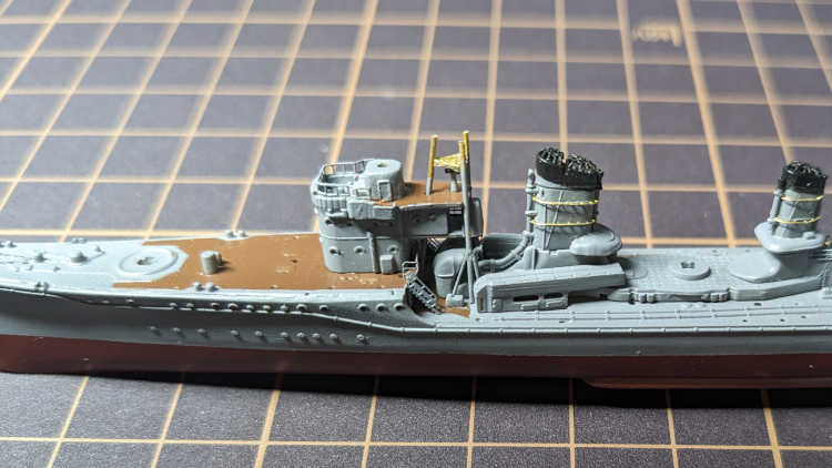 艦橋で力尽きたので、後部はフジミのエッチングパーツをそのまま取り付けています。